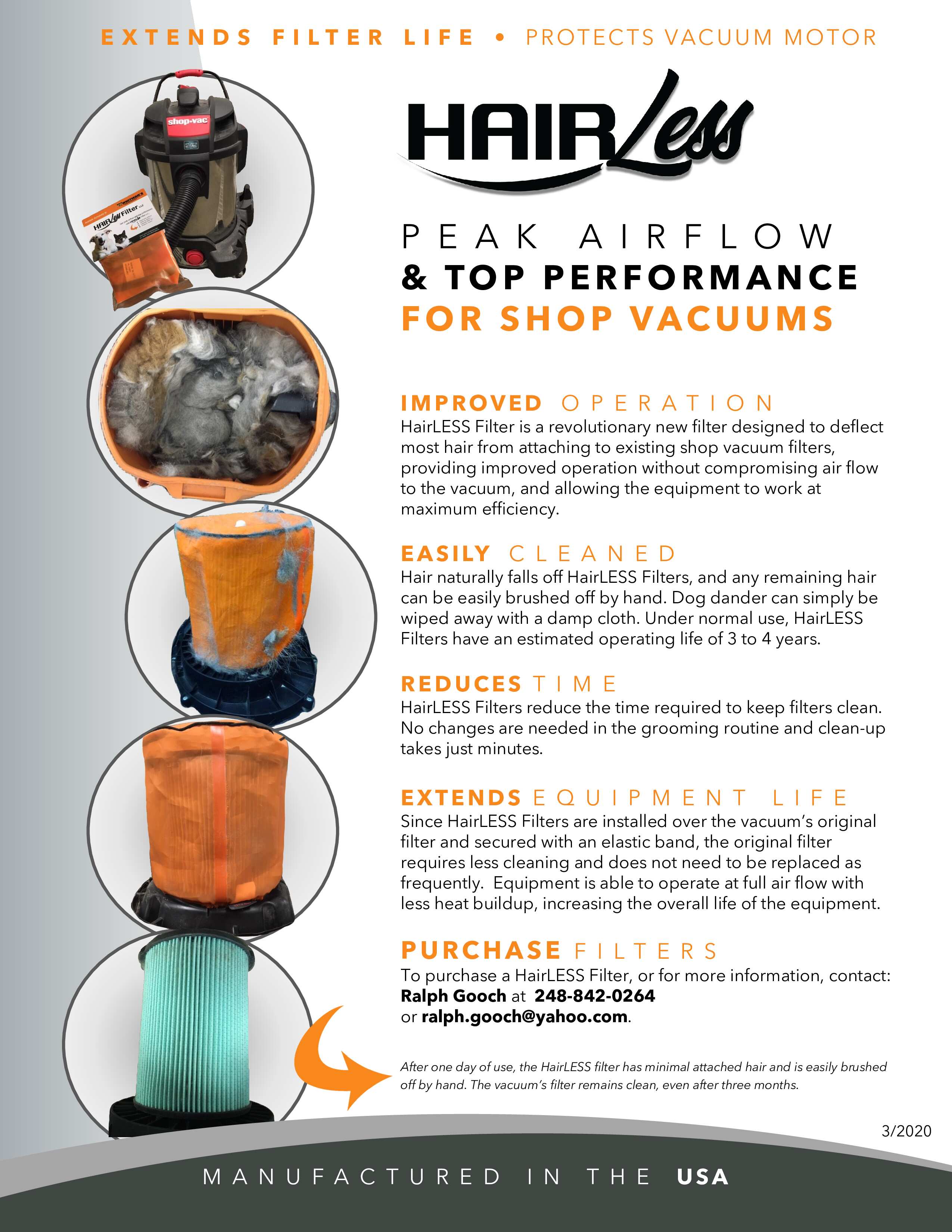 If you would like to try this technology in a different application please reach out to ralph@hairlessfilters.com with your questions.
